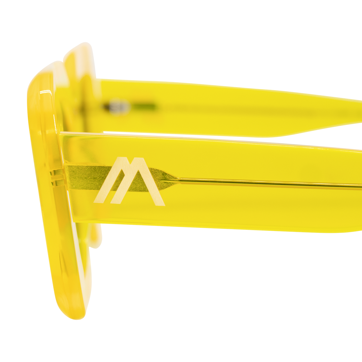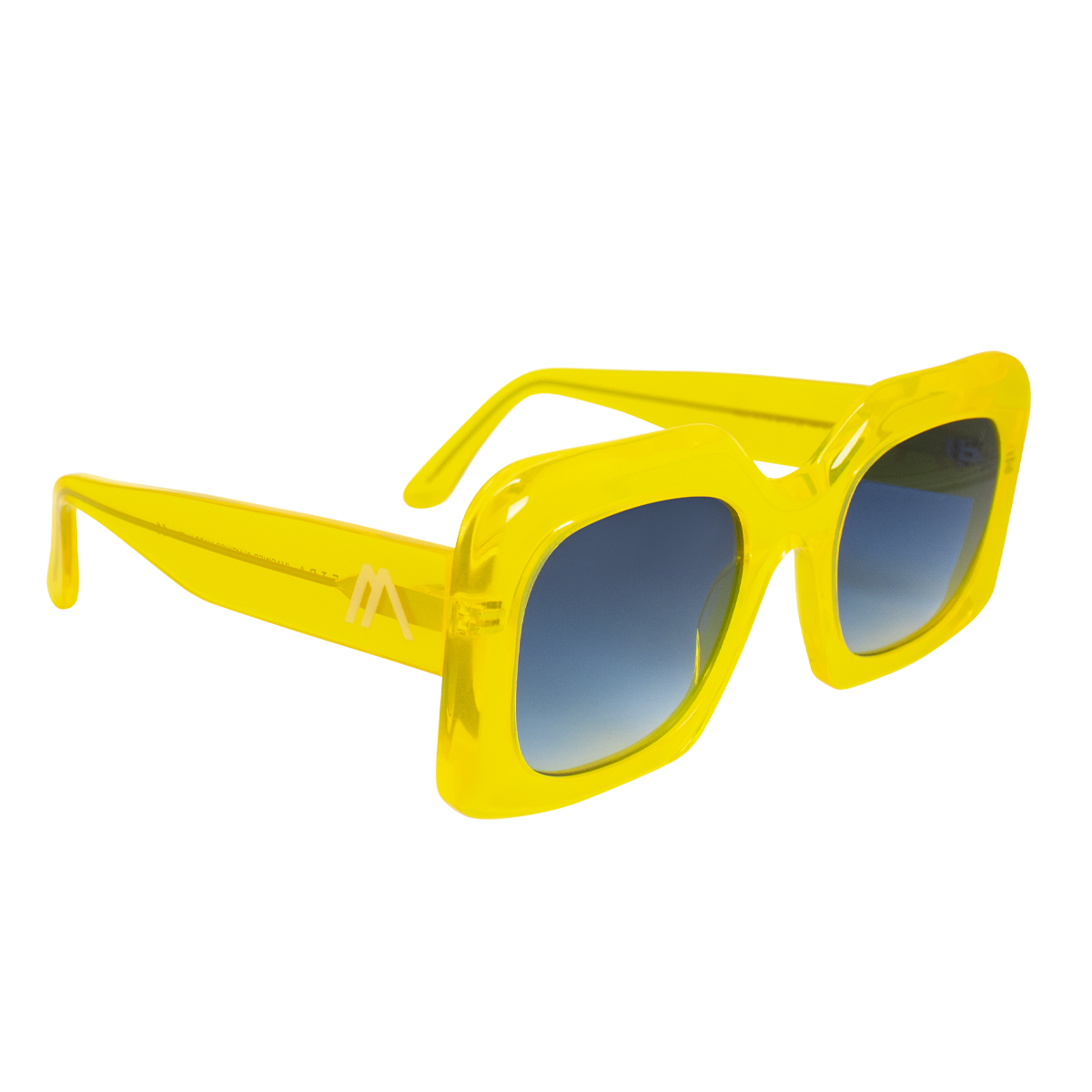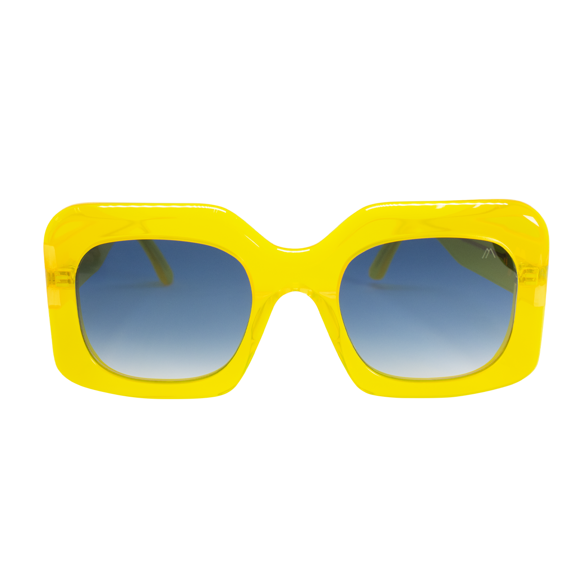 Explosión de color urbano. Acetato amarillo fosforescente con lentes en azul degradado, inspirado en el arte callejero de N.Y.C. Rebeldía y creatividad en cada mirada.